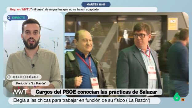 Más Vale Tarde conecta con Diego Rodríguez, periodista de 'La Razón', el medio que hoy publicaba que cargos del PSOE sabían que Paco Salazar, el alto cargo que renunció por las acusaciones de acoso y comportamiento inapropiado, elegía a las trabajadoras en función de su físico.