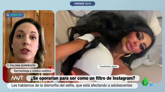 Desde la pandemia, han aumentando en un 30% las demandas de este tipo en las consultas de cirugía estética. Paloma Borregón, dermatóloga y médico estético, ha afirmado en Más Vale Tarde que cada vez ven más pacientes que van a consulta y muestran "lo que les gustaría ser con una foto con un filtro de Instagram".