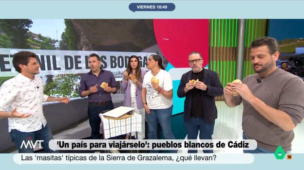 Luis Calero se ha desplazado esta semana para grabar su reportaje de 'Un país para comérselo' a los pueblos blancos de Cádiz, concretamente a Setenil de las Bodegas y a Zahara de la Sierra; de donde procede la merienda que trae este viernes a los colaboradores de Más Vale Tarde, las 'masitas', una tapa típica de la Sierra de Grazalema hecha con la carne del cerdo. "Te pides una caña y te la ponen", asegura el colaborador viajero para la envidia de sus compañeros de programa.