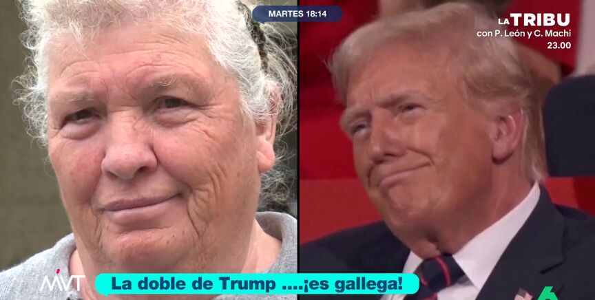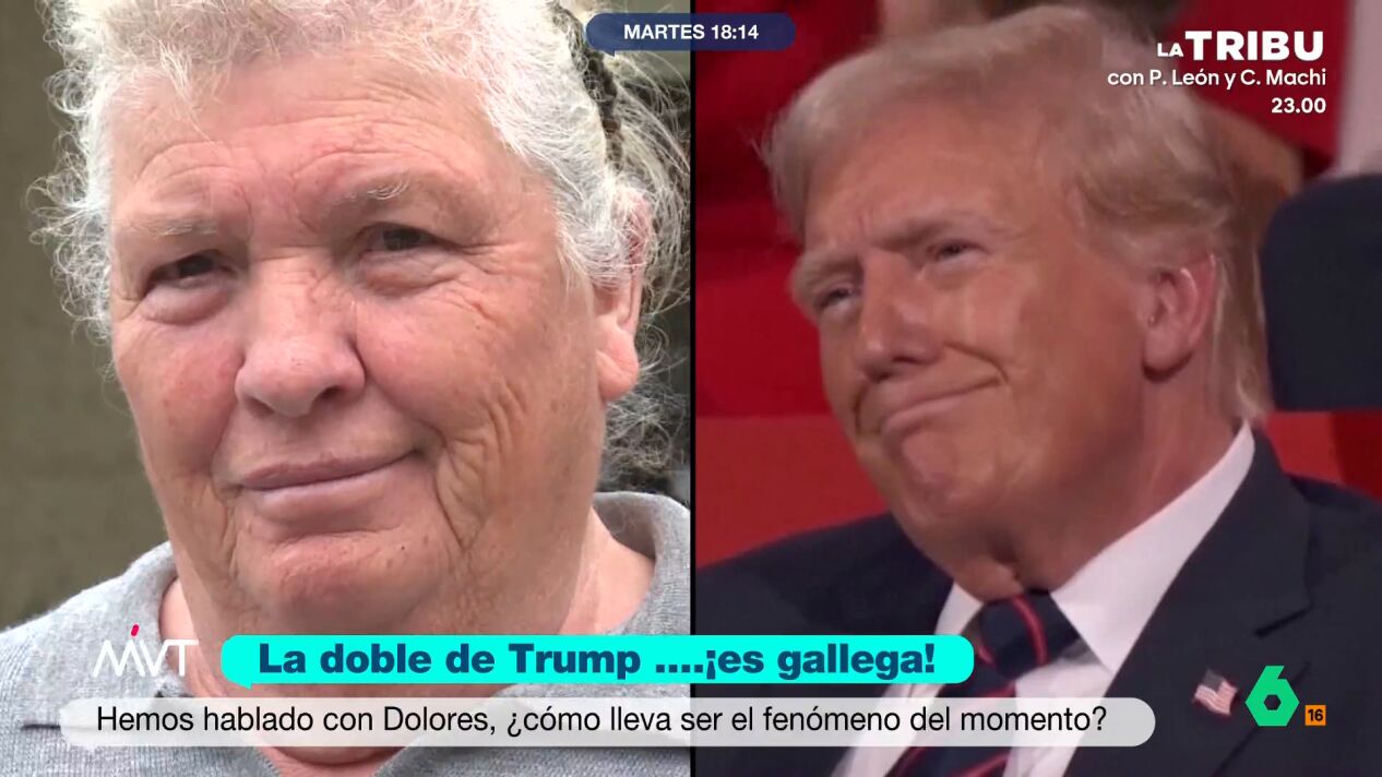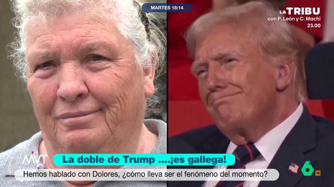 Dolores Leis, una mujer gallega, se ha vuelto viral por su enorme parecido con Donald Trump. Tanto ella como su familia se lo toman con humor y su hija asegura que cuando sus hijos ven al presidente de EEUU en la tele dicen: "¡Ahí está la abuela!".