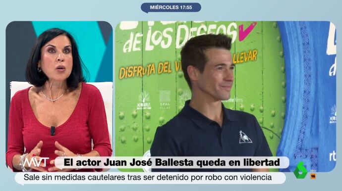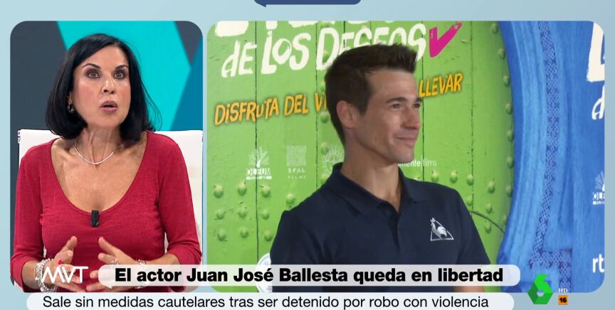 Beatriz de Vicente ha analizado en Más Vale Tarde la detención de Juan José Ballesta por presunto robo con violencia, quedando en libertad sin medidas cautelares por los hechos. Dejando claro que desconoce la gravedad de las lesiones del actor y que no se encontró ni la chaqueta que su amigo dijo haberle robado ni el dinero que se presuntamente se llevó, "no parece sostenerse sobre indicios de criminalidad".