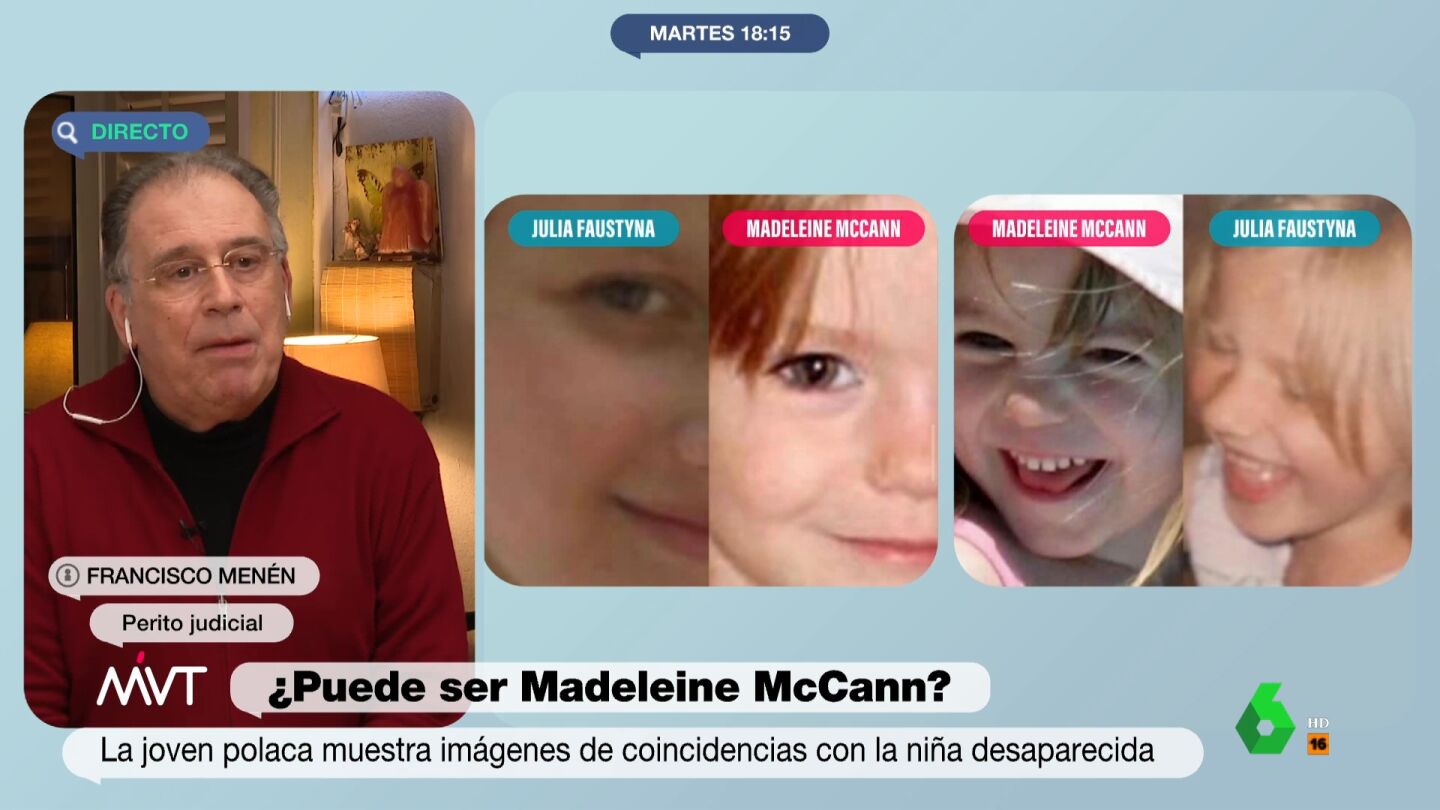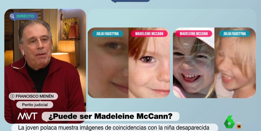 ¿Puede ser Madeleine McCann realmente Julia Faustyna, la joven polaca que afirma ser la niña británica desaparecida en 2007? En Más Vale Tarde, hablamos con el perito judicial Francisco Menén, que ve "casi imposible" establecer el parecido entre ambas partiendo de las fotografías distribuidas por la joven polaca.