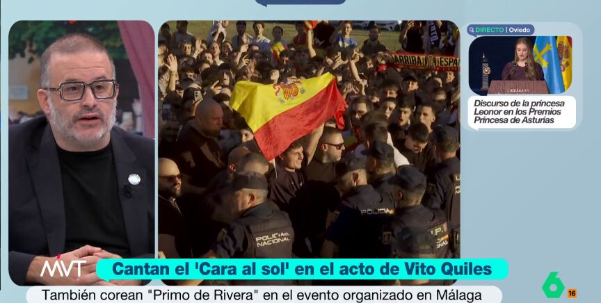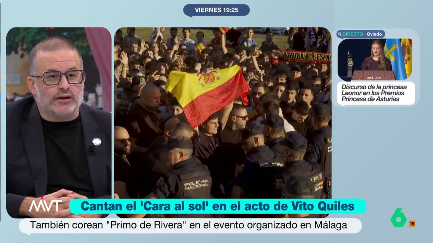 Edu Galán considera que "no es difícil tener un nivel intelectual mayor que Vito Quiles". "Charlie Kirk lo tenía y, además, era estratégicamente, a nivel de comunicación, más efectivo porque lo que hacía era instalarse en carpas, entrar de forma autorizada y trabajar durante muchos años", reflexiona.