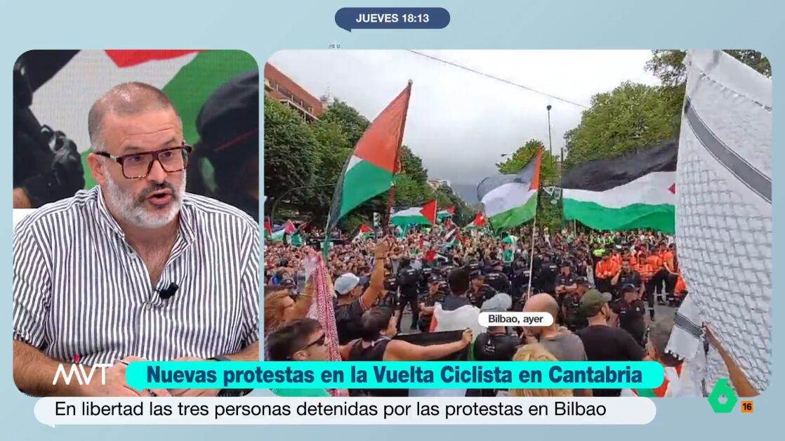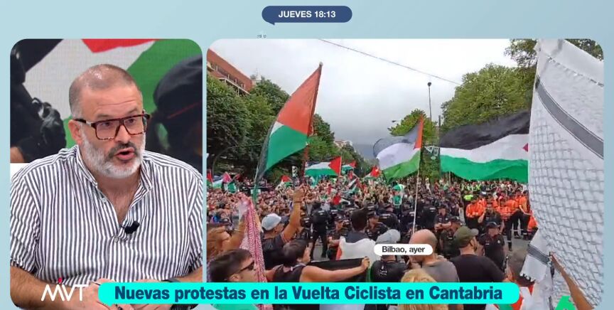 El escritor también denuncia la "constante criminalización del activismo" y defiende que las protestas en la Vuelta son "absolutamente civilizadas". Además, las considera "absolutamente proporcionales", dado que en su opinión "es la única forma de protesta que tiene la población contra un genocidio".