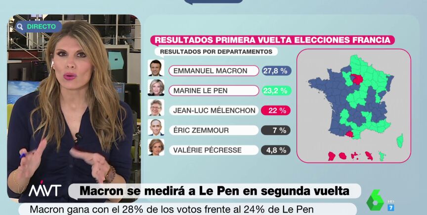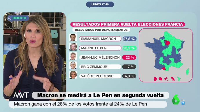 Los resultados de la primera vuelta de las elecciones en Francia señalan que los departamentos del centro y del oeste del país han votado mayoritariamente a Emmanuel Macron, mientras que en el resto de regiones la ganadora ha sido la ultraderecha de Marine Le Pen.