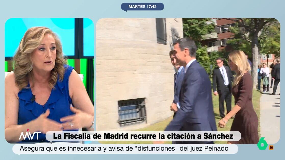 "Es verdad que la Fiscalía normalmente no recurre las llamadas a declarar de testigos", comenta la periodista, que señala que con "tres recursos esperando, no va a dar tiempo para esa fecha". Respecto al juez Peinado, apunta que "es la realización de una diligencia que no va a llevar a ninguna parte".