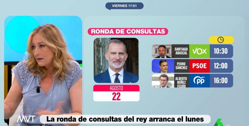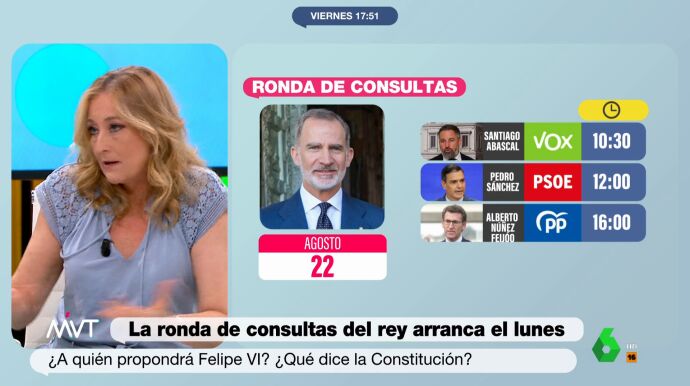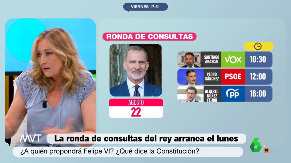 La periodista Elisa Beni ha asegurado en Más Vale Tarde que "Felipe VI no tiene ningún dilema" a la hora de proponer un candidato a la investiduraa presidente de gobierno.