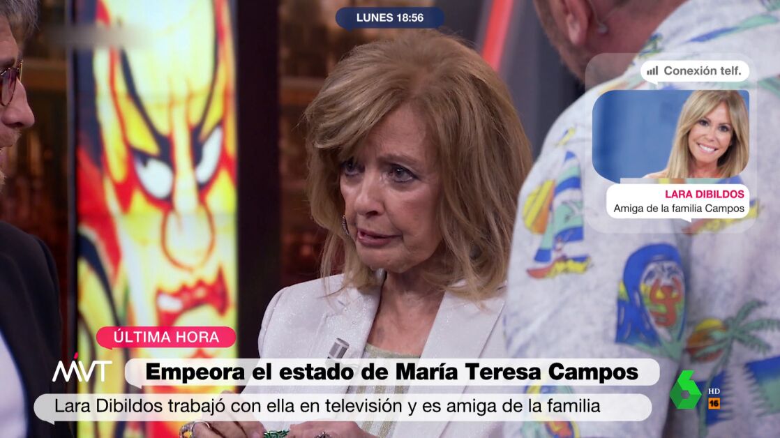 Lara Dibildos conoce bien a María Teresa Campos, a quien define como "una de las grandes comunicadoras de este país". En Más Vale Tarde, su amiga y compañera recuerda el legado de la periodista, ingresada en estado muy grave, la cual "llegaba a todo el mundo con su simpatía y profesionalidad".