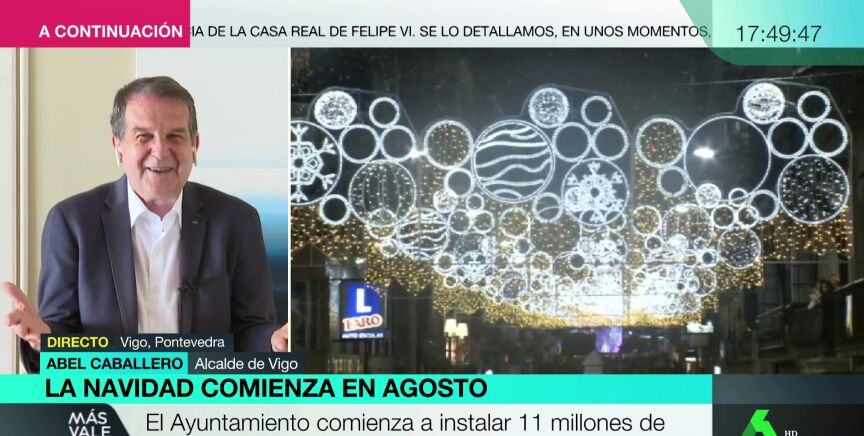El alcalde de Vigo, Abel Caballero, ha respondido en Más Vale Tarde a las críticas que ha recibido por comenzar la instalación de las luces de Navidad tal día como hoy, cuatro de agosto.