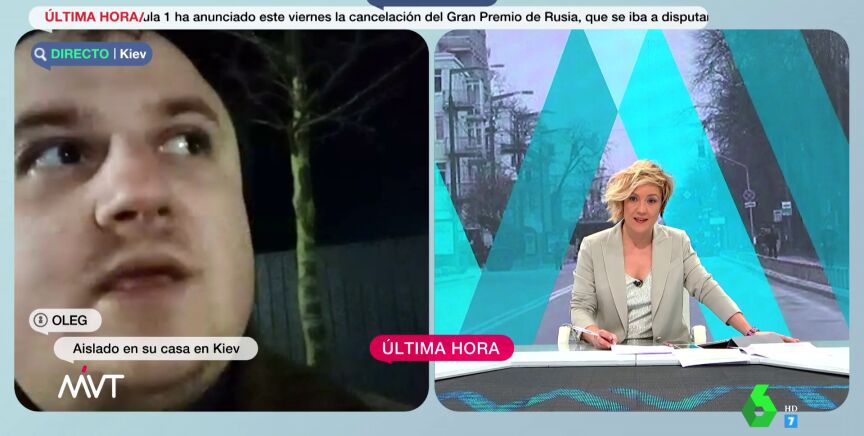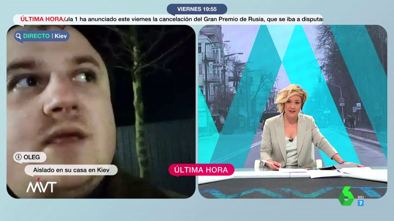 "Hoy voy a dormir en un búnker". Oleg está en Kiev, donde escucha el sonido de "bombas, tiros y tanques", según relata en Más Vale Tarde. La pasada madrugada -cuenta- un misil impactó en un edificio cercano al suyo: "Había fuego, ha muerto gente", explica.
