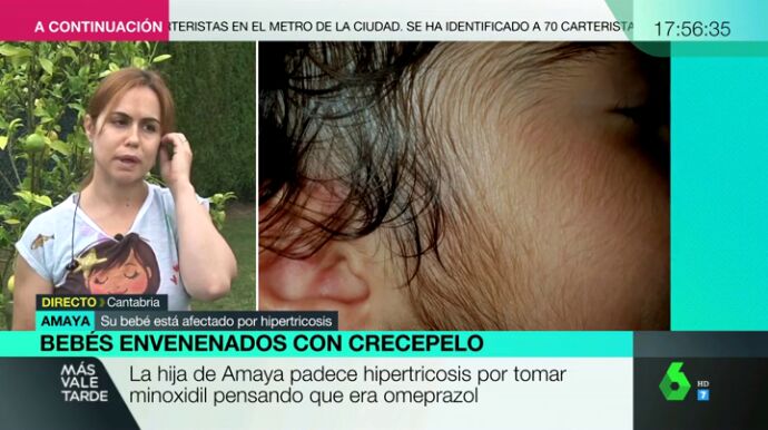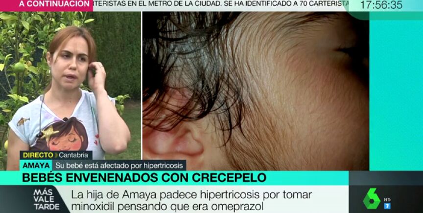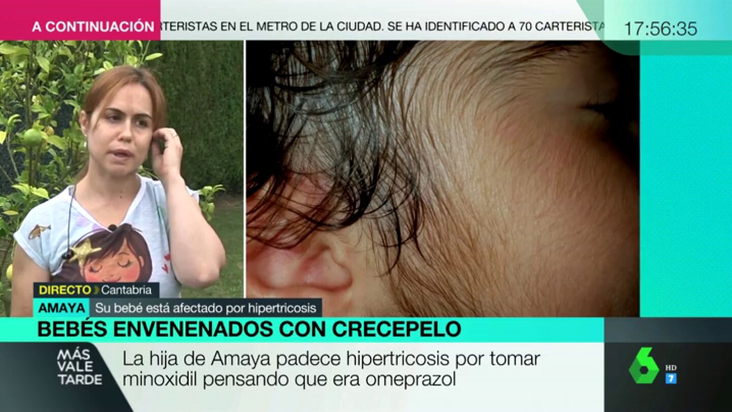 Amaya es una de las madres con bebés afectados porhipertricosis derivado de ingerir monoxidil (crecepelo) etiquetado como omeprazol. Está indignada y denuncia que "ningún organismo oficial competente en la materia se ha puesto en contacto" con ellos.