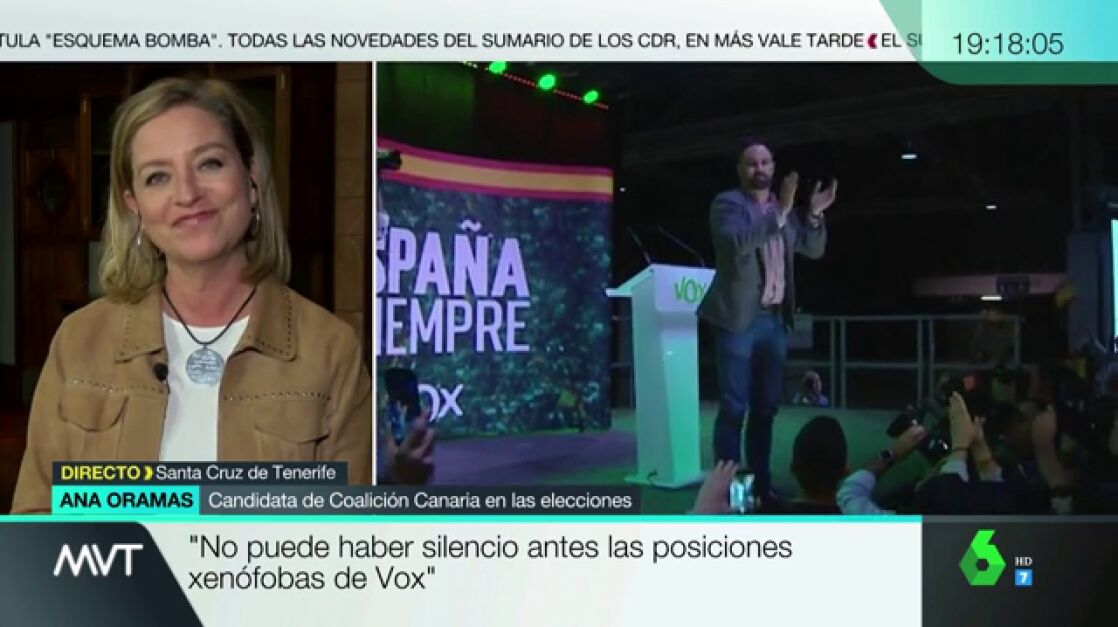 La candidata de Coalición Canaria ha asegurado que es una situación que no va a cambiar: "Ante las posiciones xenófobas, racistas, misóginas y contra la ley de ivolencia de género de Vox no puede haber silencio".