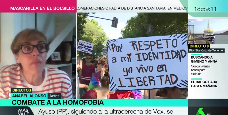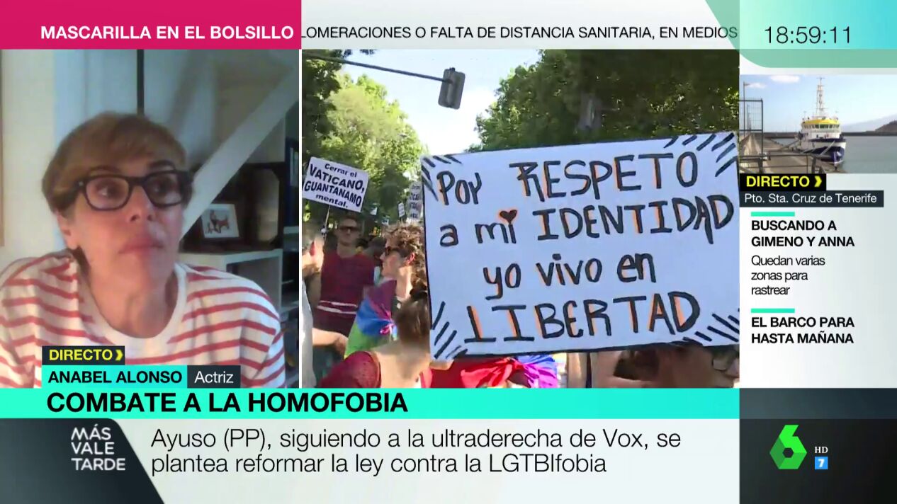 Ayuso se abre a revisar las leyes LGTBI en este nuevo gobierno de continuidad, unas normas que Vox ha pedido que derogue. La actriz Anabel Alonso se ha pronunciado al respecto.
