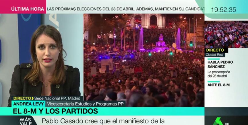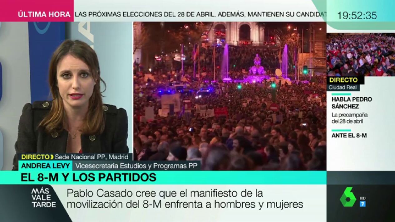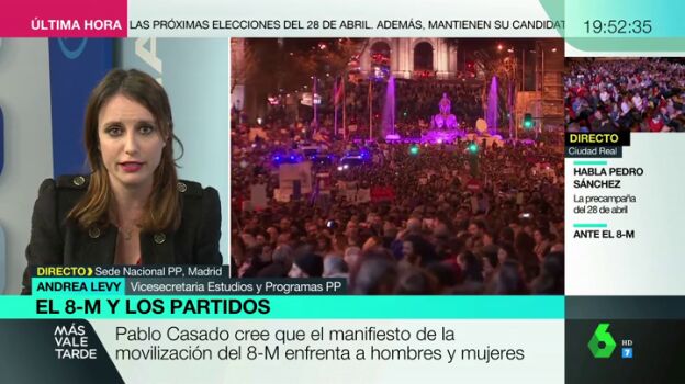 Debatimos en Más Vale Tarde con la dirigente del PP Andrea Levysobre la postura de su partido ante el 8M.