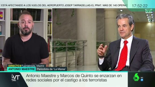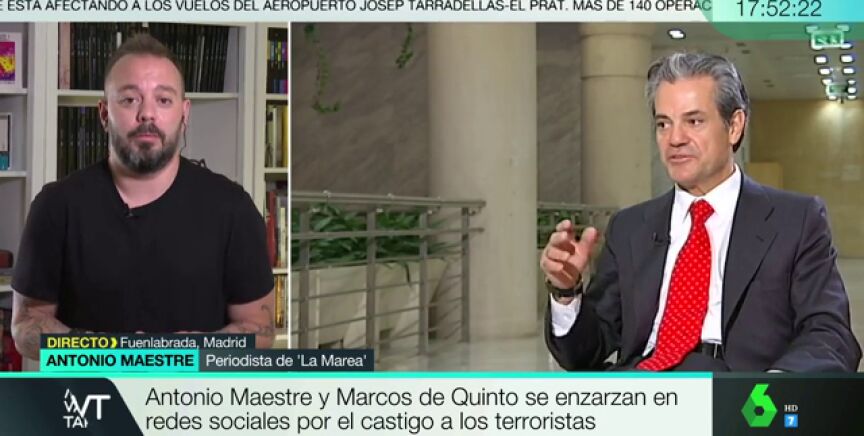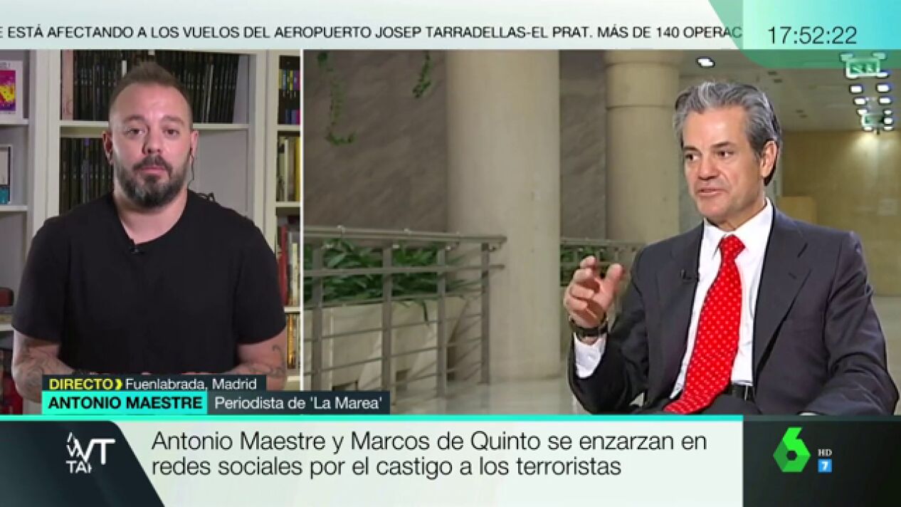 Para el periodista, lo propuesto por De Quinto "es gravísimo, es el ojo por ojo y la legitimación de la tortura como método de castigo". Entrevistado en Más Vale Tarde, Maestre ha sostenido que "el señor De Quinto no comprende su papel" como diputado al hacer tales afirmaciones en las redes.