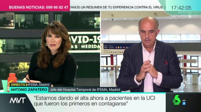 Antonio Zapatero, jefe del hospital del Ifema: "Empezamos a dar altas de UCI a los infectados de finales de febrero"