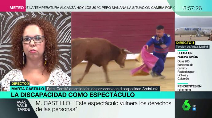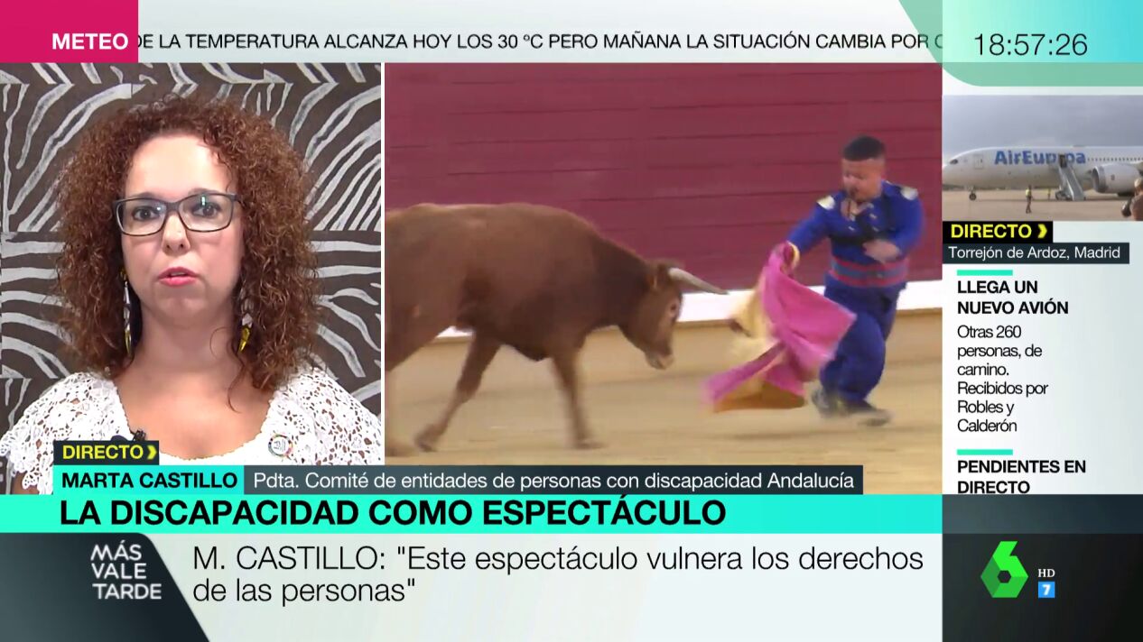 Marta Castillo, presidenta del Comité de Entidades de Personas con Discapacidad de Andalucía, ha denunciado en Más Vale Tarde la vuelta a los ruedos delespectáculo cómico taurino en el que participan personas con acondroplastia (enanismo). Asegura que las consecuencias de ese tipo de trabajos es que después quienes los visitan "se ríen de las personas que tenemos esta discapacidad, sufrimos sus burlas y sus insultos".