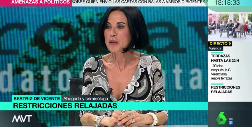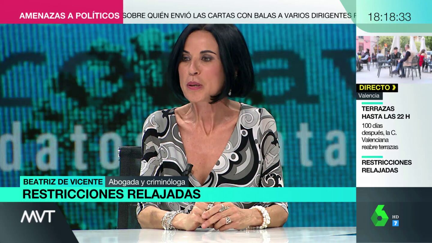 Beatriz de Vicente es abogada, criminóloga, colaboradora de Más Vale Tarde... y superviviente de el COVID-19. Porque ha desvelado en el programa que se contagió del virus y ha vivido una experiencia muy grave. "Me contagié en Cádiz, el día del fallecimiento de mi padre. El personal que vino a llevarse el cuerpo había pasado la variante británica, y probablemente no estaba el material debidamente aséptico. Allí lo cogimos la mujer de mi padre, mi hermana pequeña y yo".