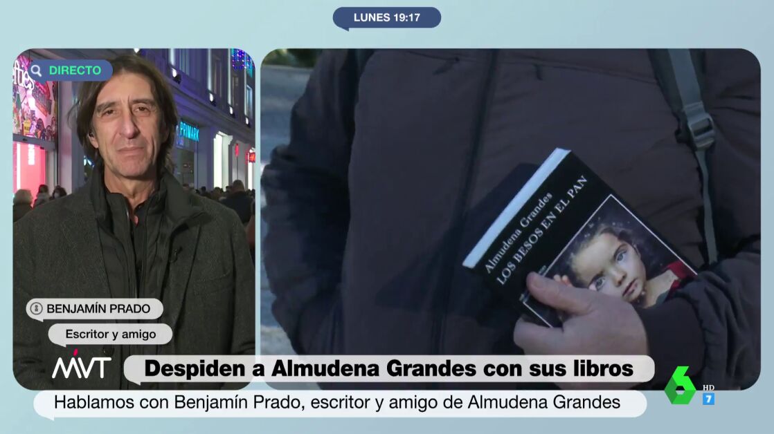 El poeta Benjamín Prado era buen amigo de la recién fallecida Almudena Grandes, y ha querido intervenir en Más Vale Tarde para recordar a la escritora, que se ha ido a los 61 años a causa de un cáncer de colon: "Yo no recuerdo ni un minuto malo, ni un segundo vacío, una conversación que no mereciera la pena, al lado de Almudena; ni un día en el que no estuviera sobre la mesa su generosidad extrema. Era una persona absolutamente increíble".