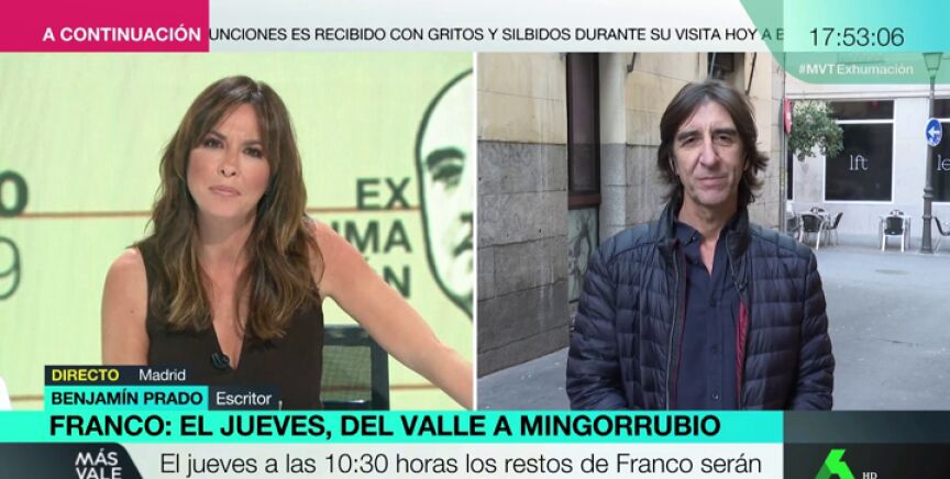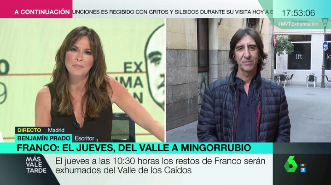 El periodista y escritor Benjamín Prado ha defendido en Más Vale Tarde que "está bien que al menos el criminal en jefe salga de su túmulo mortuorio", ya que "nadie ha pagado un minuto de cárcel" por la dictadura.