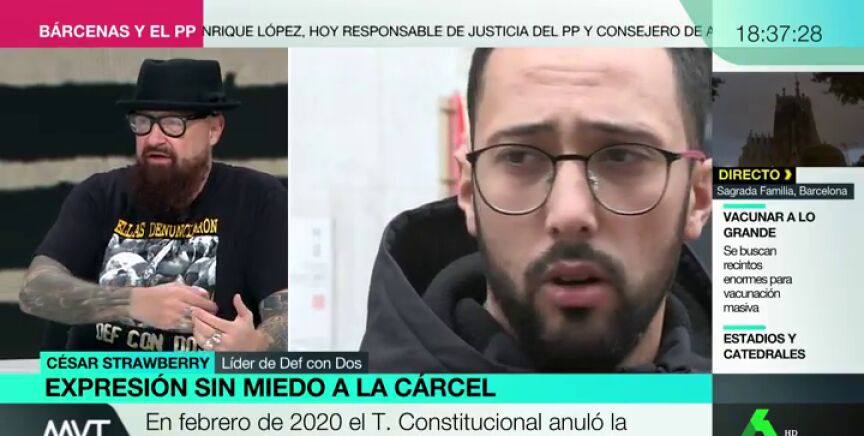 César Strawberry, vocalista de Def Con Dos, ha explicado en Más Vale Tarde lo que es ver la cárcel cerca por sus letras. El rockero fue condenado en 2017 a un año de prisión por enaltecer el terrorismo, sin embargo logró ser absuelto tras un recurso al Tribunal Constitucional.