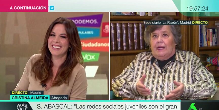 Durante un momento de la entrevista, la presentadora se ha referido a ella como "Almeida", algo que ha llamado la atención de la entrevistada: "Ahora me está llegando cantidad de gente que me dice 'pero Cristina, ¿qué dicen en el metro de que a Almeida no la quieren?'", explicaba Cristina Almeida. "Yo el único político que conozco es Martínez-Almeida, y no sé si ha cambiado el apellido y ha hecho un acto de feminismo absoluto reconociendo la vigencia del apellido de su madre", bromeaba la abogada.