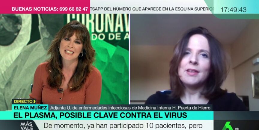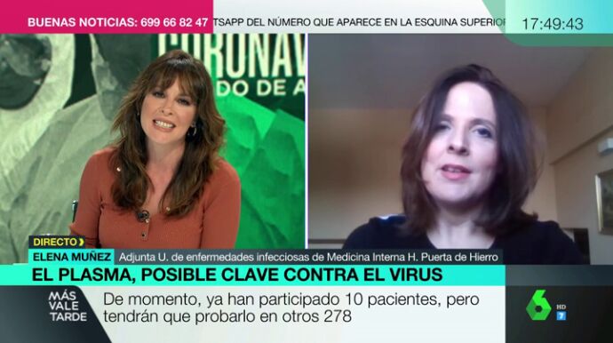 "Queremos demostrar que la utilización de este plasma con anticuerpos cambia la evolución de la enfermedad. Es decir, si infundir este plasma en las formas precoces hace que la evolución de la enfermad sea mejor, sin evolucionar a las formas graves que lleva a los pacientes a la UCI o incluso a la muerte", ha explicado la doctora.
