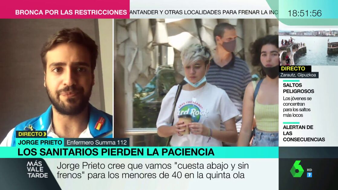 "Somos una sociedad de inmediatez. Queremos todo ya, y pensamos que la pandemia se va a acabar ya, y no, hay que darle tiempo. Esto no ha terminado", ha recordado el enfermero en una entrevista en Más Vale Tarde, donde ha asegurado que a pesar del aumento de la vacunación, ésta no impide el contagio.