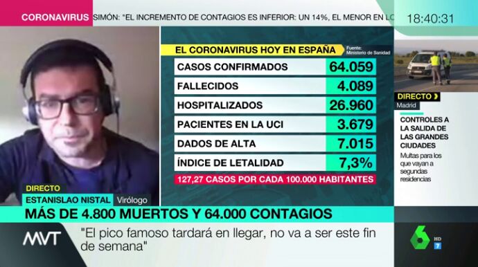 Estanislao Nistal, virólogo: "Espero que el pico de personas infectadas sea a mediados o finales de abril"