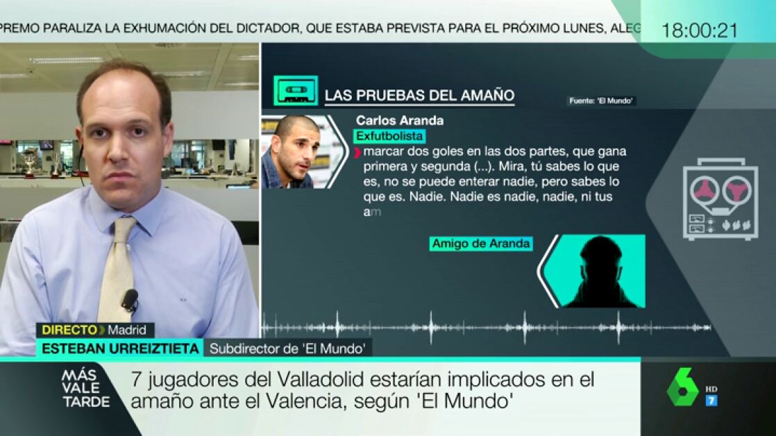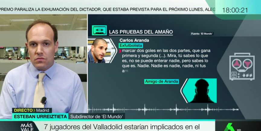 Después del partido, Carlos Aranda, cabecilla de la trama, "se jacta y presume de que han terminado con éxito la operación porque tenían a siete futbolistas del Valladolid comprado, prácticamente a toda la plantilla inicial", cuenta. Además, Urreiztieta asegura que también es reveladora una grabación en la que "reconocen que el enlace es Borja Fernández, al que hay que abonarle un primer pago de 5.0000 euros por las gestiones prestadas".