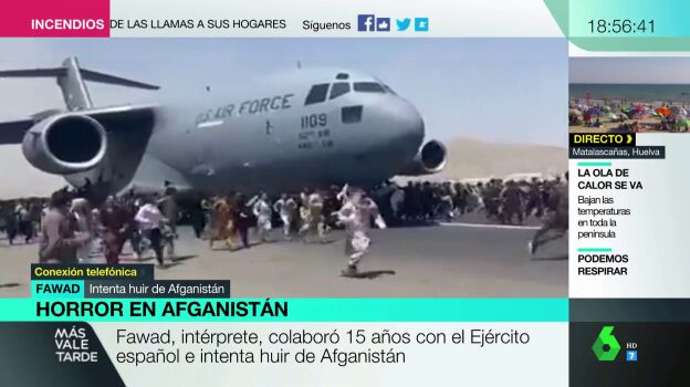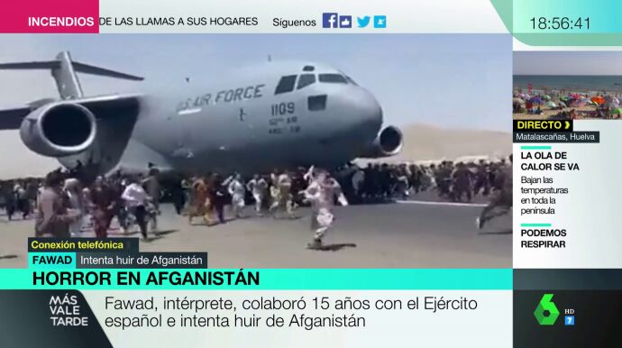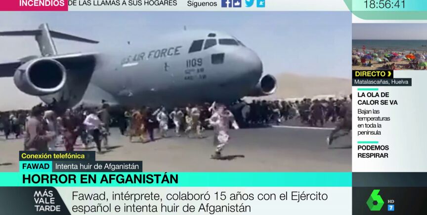 Entre las miles de personas que esperan con desesperación salir de Afganistán se encuentra se encuentran también afganos colaboradores de nuestro Gobierno. Afganos como Fawad, intérprete que ha trabajado durante 15 años para el Ejército español. Ahora mismo se encuentra a 500 metros del aeropuerto, a la espera de que pueda ser repatriado junto a su familia. En Más Vale Tarde hemos querido hablar con él para conocer de cerca la situación que está viviendo.