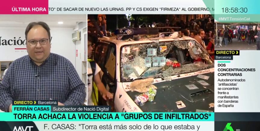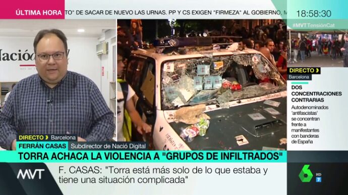 Ferrán Casas, subdirector de Nació Digital ha analizado la situación que se está sufriendo en Cataluña tras cuatro días de protestas por la sentencia del procés.