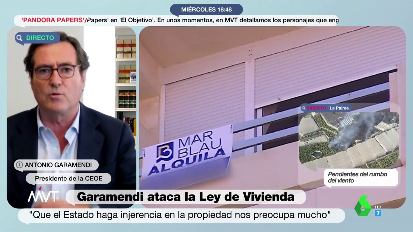 El presidente de la CEOE, Antonio Garamendi, ha crticiado la ley de vivienda que plentea el Gobierno al calificarla como una "injerencia" del Estado en la propiedad, recogida como un derecho constitucional en el artículo 33.