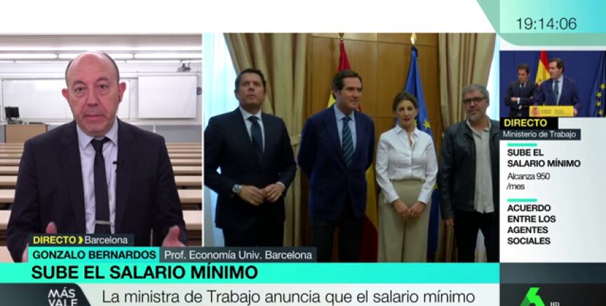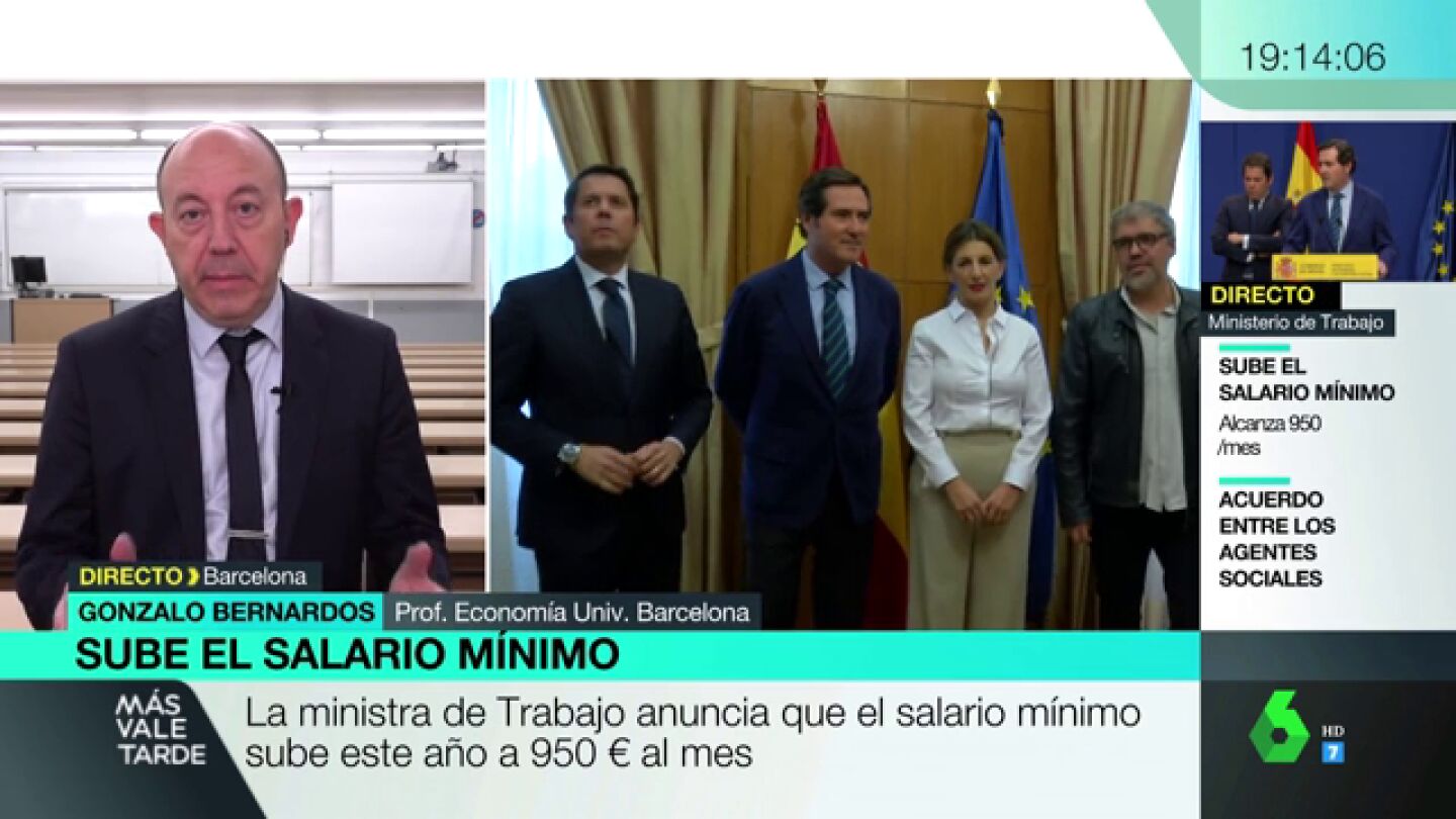 El profesor Gonzalo Bernardos, profesor de Economía de la Universidad de Barcelona, aplaude en MVT la subida del salario mínimo a 950 euros y asegura que hará aumentar el poder adquisitivo de los trabajadores.