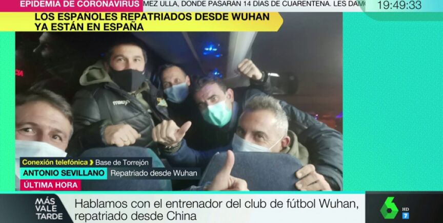 Antonio Sevillano, entrenador de fútbolrepatriado desde la ciudad china de Wuhan, ha hablado con Mamen Mendizábal instantes después de pisar suelo español.