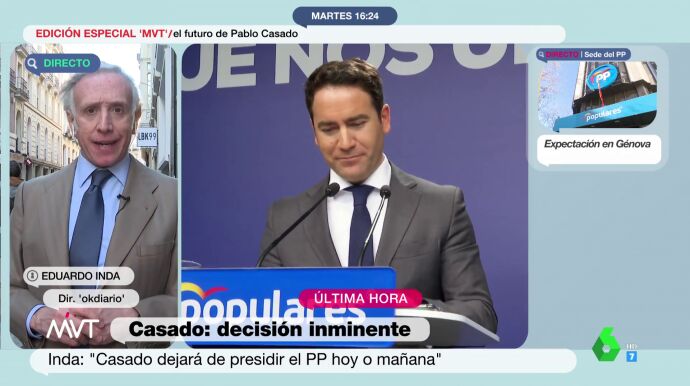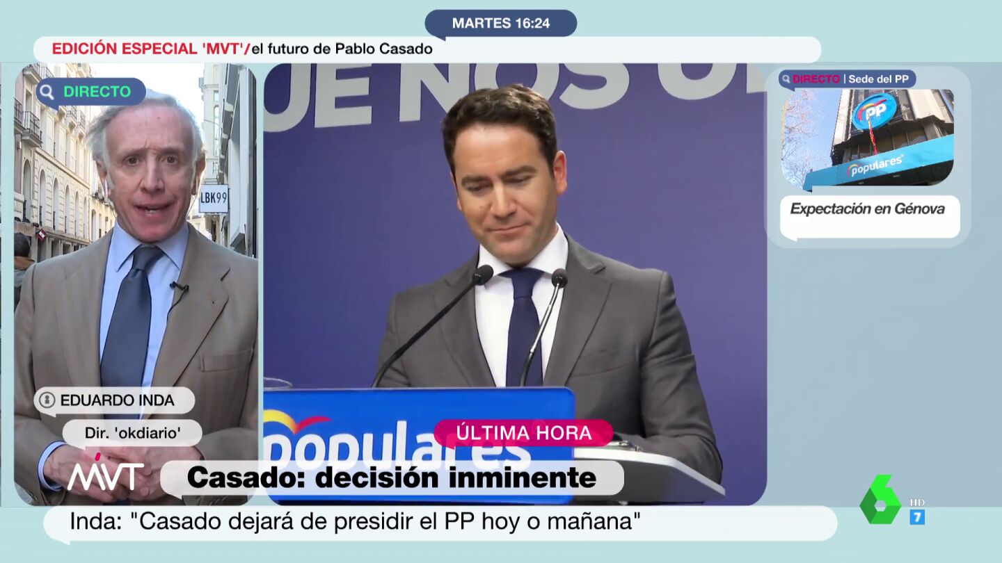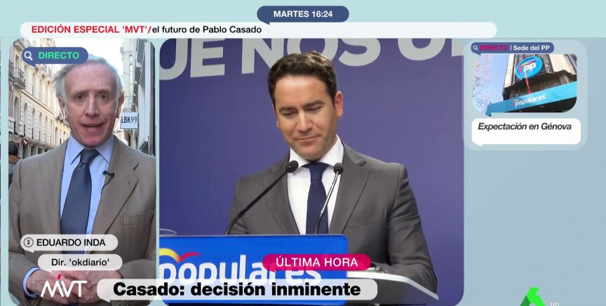 Eduardo Inda cree que Pablo Casado tenía que "haber quitado" a Teodoro García Egea del lugar en el que estaba "hace mucho tiempo".