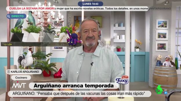 "Tendrá buena temperatura allí". Es la irónica explicación de Karlos Arguiñano a por qué el rey emérito, Juan Carlos I, no ha regresado de Emiratos Árabes, donde permanece tras desde hace ya más de un año, tras abandonar España entre diversos escándalos por su patrimonio en el extranjero.