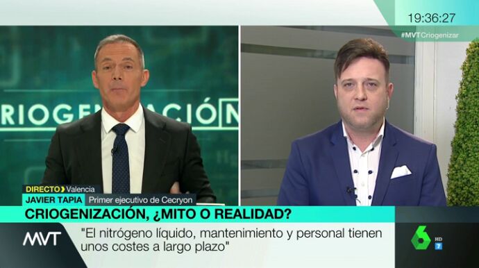 "Nosotros no prometemos que vayamos a recuperar a la persona con seguridad. Nuestra propuesta de valor es criopreservar a la persona durante 100 años y si se dan las condiciones de que pueda ser recuperada poder recuperarla", ha explicado Javier Tapia.