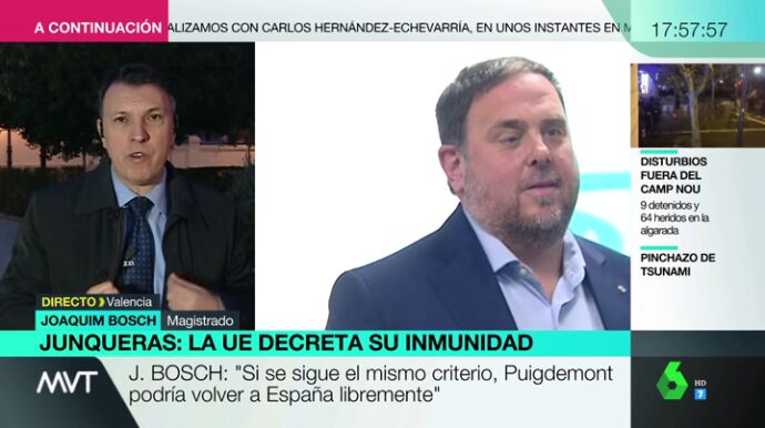 Joaquim Bosch ha asegurado que "15 jueces europeos han desautorizado con claridad al Tribunal Supremo español". El magistrado explica por qué el Tribunal Supremo podría levantar la pena de prisión sobre Junqueras.