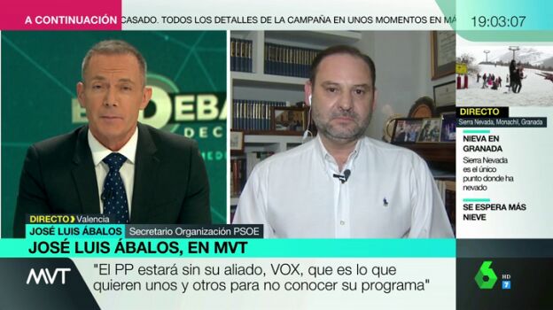 El secretario de Organización del PSOE, José Luis Ábalos, ha hablado en una entrevista en Más Vale Tarde sobre la decisión de Pedro Sánchez de asistir a los dos debates.