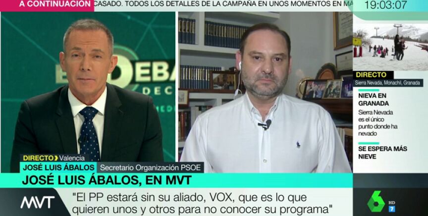 Analizamos con el secretario de Organización del PSOE, José Luis Ábalos, la campaña electoral y el debate decisivo.