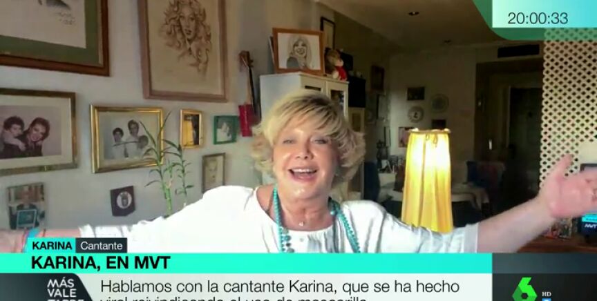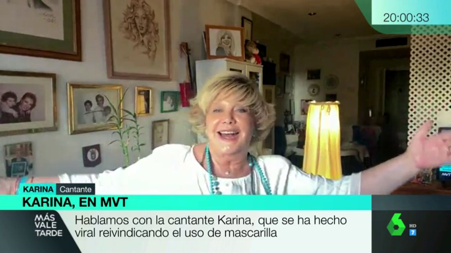 La cantante Karina ha puesto letra a una canción antigua de Juan Carlos Calderón para concienciar del uso de la mascarilla. Además, afirma que si se encuentra a Miguel Bosé no se acercará a él.