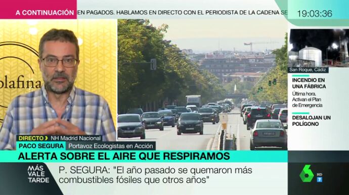 Paco Segura considera que nuestro país "va en la senda contraria" a la de tomar conciencia ecológica: "El año pasado se quemaron más combustibles de automoción y fósiles que otros años".