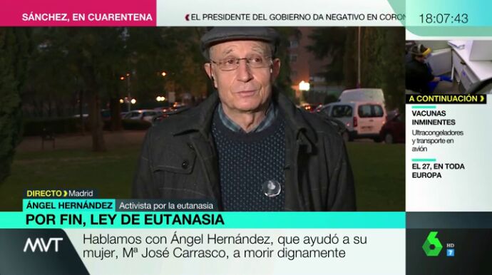 Ángel Hernández, cuyo nombre saltó al escenario mediático en abril del año pasado después de practicar el suicidio asistido de su mujer, ha considerado que su caso fue un empujón importante a la ley: "Fuimos la gota que colmó el vaso".