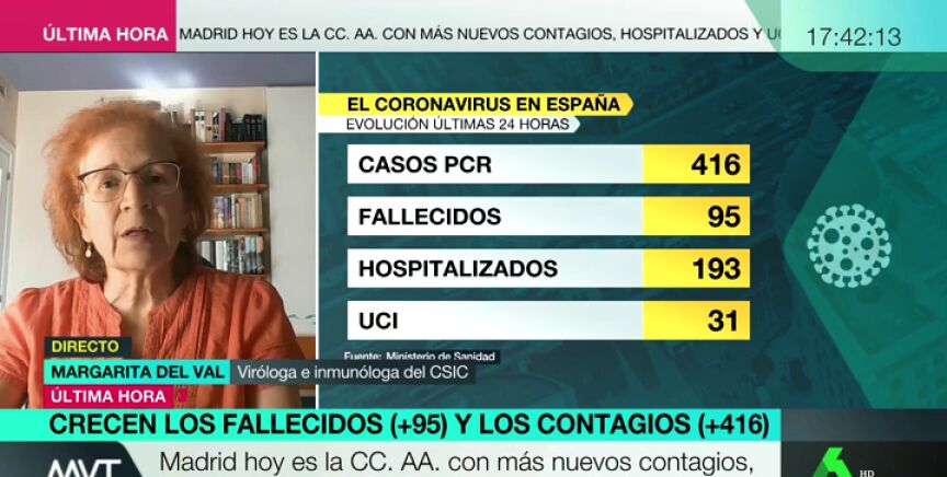 La viróloga Margarita del Val avisa: "Tenemos la mitad de casos activos que cuando estábamos en el pico, aún hay mucho virus suelto"