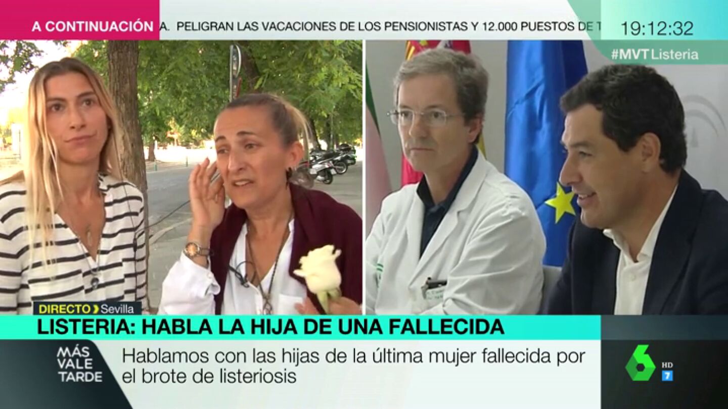 Elisabel y María Serrano, hijas de Francisca,la mujer fallecida por listeriosis, se han mostrado indignadas con las palabras del presidente de la Junta de Andalucía, Juanma Moreno: "Tenemos que estar orgullosos de ser capaces de asumir el mayor brote de listeria de Europa con un índice de mortandad muy bajo".