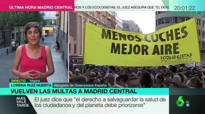 Un juez reactiva Madrid Central tras un recurso presentado por Ecologistas en Acción y Greenpeace. Lorena Ruiz-Huerta, abogada de Greenpeace explica en MVT cómo han recibido la noticia.