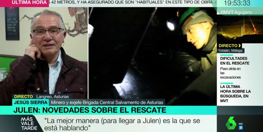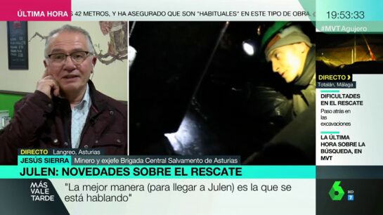 Los equipos de rescate trabajan bajo mucha presión para buscar a Julen, pero las complicaciones no se convierten en un fracaso para ellos. Jesús Sierra es mineroy exjefe de la Brigada Central de Salvamento y ha intervenido en Más Vale Tarde para explicar los pasos a seguir de los mineros expertos una vez estén dentro del túnel.