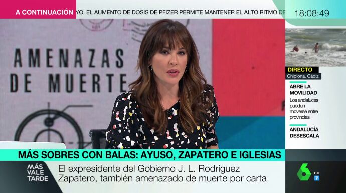 La presentadora de Más Vale Tarde ha destacado que "hay un nivel de amenazas que reciben los personajes públicos que no suponen una amenaza real".