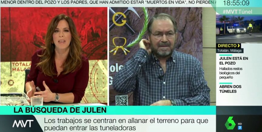 Manuel Regueiro, presidente del Colegio de Geólogos, interviene en Más Vale Tarde para explicar los detalles de las obras de ingeniería que se están llevando a cabo en el rescate de Julen.